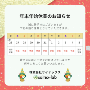 誠に勝手ながら、下記期間における検査業務及び、お問い合わせ対応をお休みさせていただきます。